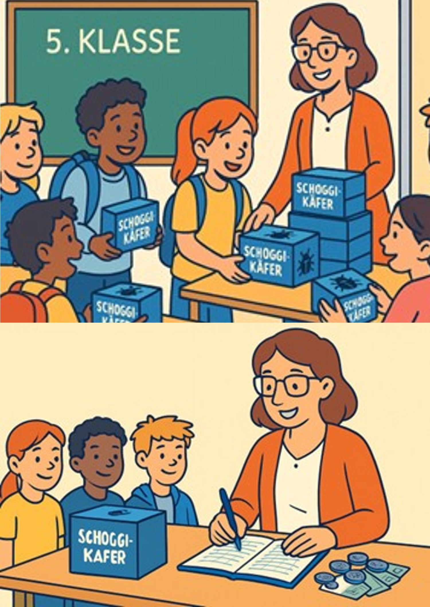Werden Sie Depotstelle für Ihre Klasse und Schulhaus. Die SuS können bei Ihnen individuell die Käfer beziehen und verkaufen.
